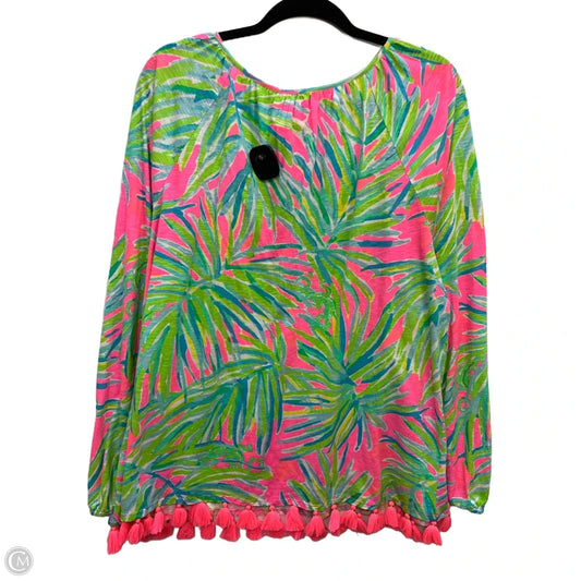 Top Long Sleeve Designer By Lilly Pulitzer In Green & Pink, Size: Xl